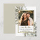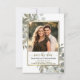 Ces magnifiques cartes de dates permettront à vos amis et à votre famille de connaître votre prochain mariage. Ils présentent un design rustique vert sauge et or avec votre photo entourée de sprigs peints à la main de feuilles d'eucalyptus et de branches de pins. Le titre est écrit dans la calligraphie en dactylographie avec la place pour les noms du couple, la date du mariage, l'emplacement, et le site Web.