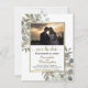 Save The Date Eucalyptus rustique et pin avec photo Mariage blan