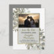 Ces cartes de dates sont un excellent moyen de faire connaître à vos amis et à votre famille votre prochain mariage. Ils présentent un design rustique avec votre photo entourée de sprigs peints à la main de feuilles d'eucalyptus et de branches de pins dans les tons vert sauge et or sur un arrière - plan gris. Le titre est écrit dans la calligraphie en dactylographie avec la place pour les noms du couple, la date du mariage, l'emplacement, et le site Web.