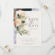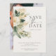 Un mariage élégant sauvez la date avec un modèle photo, avec une aquarelle d'un rose et de la verdure d'eucalyptus, avec des accents d'or (c'est un effet numérique, pas un vrai papier d'aluminium).