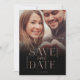 Carte moderne et minimaliste de save the date avec photo. Le design présente une photo pleine page moderne pour afficher votre propre photo spéciale. "Événement à Sauvegarder" est affiché dans une typographie moderne en faux or rose avec les noms et la nouvelle date de mariage. Le dégradé noir sur la photo ajoute une touche de luxe.