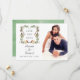 Épique rustique enneigé de fleurs de pin et d'épicéa aquarelle carte de Noël de mariage enregistrer la date avec un fond de lavis aquarelle vert sauge.