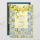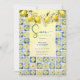 This exquisite digital design is inspired by refined Mediterranean aesthetics, combining decorative tile patterns in deep marine blue tones with floral and lemon garlands in luminous yellow shades. The composition conveys freshness, tradition, and elegance, evoking coastal landscapes, Mediterranean architecture, and sun-filled celebrations. The contrast between rich blue and vibrant yellow creates a sophisticated and distinctive visual balance, ideal for announcing a wedding with character and style.