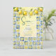 Exquisite Mediterranean Tiles and Floral & Lemons Garland Wedding Save the date Cards in Yellow and Blue Marine with Back Photo and QR Code.