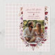 Exquisite Romantic Burgundy Floral Arch Wedding Save the Date Design with Pastel Tartan Back.