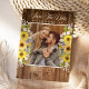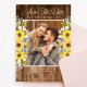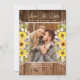 Carte de faire-part de date de Rustic Sunflower String Lights. Jolies tournesols de campagne à l'aquarelle, guirlandes lumineuses, sur un fond en bois rustique. Personnalisez ce design personnalisé avec votre propre photo et détails.