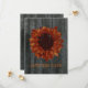 Faire part de mariage de faire suivre la date avec un fond en bois de grange à l'avant et à l'arrière. L'avant présente un tournesol qui semble avoir été peint sur du bois de grange. Personnalisez le texte à l'avant et à l'arrière. Recherchez des invitations assorties chez Jill's Paperie.