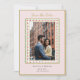 Élégant cadre floral aquarelle peint à la main ethnique sur fond rose pâle carte de faire part de mariage avec photo de couple.