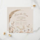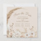 Cette carte de faire-part de mariage d'inspiration rustique présente des roses blanches associées à des fleurs sauvages séchées sur un fond beige chaud. L'arrangement floral organique et les tons terreux le rendent parfait pour les mariages en plein air, à la campagne et d'inspiration bohème.