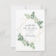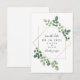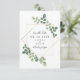 Une élégante invitation de réponse de mariage présentant un design de verdure botanique inspiré de l'aquarelle autour d'un cadre géométrique avec du texte noir.