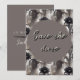 Un motif classique de style aquarelle avec des fleurs d'amaryllis noires fournit l'arrière-plan de ce design saisissant de faire-part de mariage. Des tons sombres de noir et de gris, et une police de style grunge ajoutent au thème éthéré sombre de cette suite de mariage alternative.
