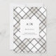 Faire part de mariage moderne avec photo et motif carreaux au dos avec monogramme et informations au verso.