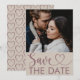 Moderne et élégant, voici la carte de 'réservez la date' de mariage. Sur le devant se trouve la photo du couple favori avec une calligraphie élégante 'Sauver la date' avec des détails de cœur. Au verso, il y a de l'espace pour ajouter vos coordonnées. Très facile à personnaliser avec vos propres informations.