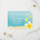 Cette carte de faire-part floral est particulièrement parfaite pour les mariages sur la plage et les îles. La carte présente les jolies fleurs de frangipanier blanc illustrées par Destei. La couleur de fond est bleue avec une texture de sable en bas. Personnalisez les zones de texte avec les détails de votre événement.