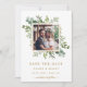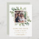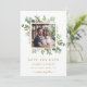 Cette invitation de faire-part de mariage photo présente de la verdure d'eucalyptus peinte à l'aquarelle, des feuilles vertes et un cadre carré doré. Pour une personnalisation plus avancée de ce design, veuillez cliquer sur le lien "Personnaliser davantage". Des articles assortis sont également disponibles.
