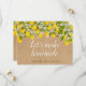 Cette jolie carte de remariage rustique aux citrons et au feuillage peut être personnalisée avec vos informations de report sur un fond kraft rustique. Un moyen amusant de tenir vos proches au courant. Conçu par Thisisnotme