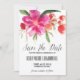 Faire part de sauvegarde personnalisable avec une composition florale aquarelle rose chaud et corail. Cela fait partie d'une suite de mariage, des articles assortis sont disponibles.