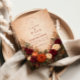Inspired by lush autumn blooms and warm seasonal tones, this romantic wedding design features layered florals in shades of rust, blush, cream, and soft greenery. The painterly illustration creates a rich, elegant frame that feels timeless and inviting, perfect for celebrating love in the fall season.