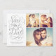 Ce carte photo de date sauvegarde un collage de 3 photos, une calligraphie tourbillonnant lettrée à la main et un faux papier métallique argenté. Visitez notre boutique de créateurs pour en savoir plus !