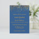 Il s'agit d'une carte de mariage d'invitation personnalisable. Un faire-part de mariage est un arrière - plan bleu avec un confetti en faux feuille d'or élégant design inspiré avec du texte blanc.Il s'agit d'un faux feuille d'or fait partie d'une suite mariage.