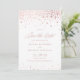 Ajoutez une touche de luxe et d'éclat à votre annonce de mariage avec cette superbe carte "Save the Date" avec confettis et feuille de faux-or doré. Elle présente un magnifique motif de confettis avec des accents élégants en feuille de faux-or rose. L'écriture délicate et fluide complète parfaitement les détails scintillants, créant une annonce de mariage intemporelle.