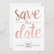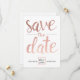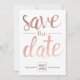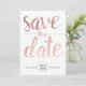 Cette sauvegarde de l'invitation de date peut être personnalisée avec votre photo sur le dos et comporte une police de script de brosse de feuille d'or faux rose.