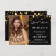 Une photo Sauvez la date pour un 30e anniversaire (ou n'importe quel âge) Sur le devant : Ajoutez une photo de taille verticale. Une couleur arrière - plan noire classique, décorée de faux étoiles dorées. Personnalisez et ajoutez un nom et des détails. Lettres blanches. Pour lui et elle.