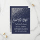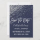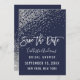 Cette élégante et glamour carte "Save the Date" pour une Baby Shower est un design tendance et chic qui présente un motif imprimé de paillettes argentées scintillantes, des confettis abstraits avec un dégradé ombré sur un fond bleu marine. C'est parfait pour la mariée moderne et élégante avec son impression simple et jolie et sa typographie personnalisée avec un effet de pinceau blanc artistique. Personnalisez la couleur du texte et du fond en cliquant sur le bouton "personnaliser".