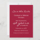 Personnalisez cette invitation moderne et élégante "save the date" pour anniversaire de mariage, de couleur rouge rubis. Ce modèle d'invitation pour une fête d'anniversaire de mariage de 40 ans est prêt à être utilisé : il suffit d'ajouter les noms des mariés, la date de la fête d'anniversaire de mariage, le lieu et les détails, ainsi que toute autre information nécessaire. Tout le texte est modifiable. Il existe également un modèle de texte supplémentaire au verso si nécessaire. Cette simple et sophistiquée carte rouge rose comporte une élégante écriture blanche qui dit "célébrant 40 ans", qui peut être modifiée pour n'importe quel nombre pour une autre année d'anniversaire. Personnalisez cette carte "save the date" d'anniversaire pour une merveilleuse fête d'anniversaire de mariage.