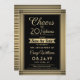 Invitez vos collègues, collaborateurs, famille et amis à une élégante célébration de retraite avec des invitations personnalisées noires et or pour cette occasion spéciale. Le modèle de texte "Cheers to 20 Years" est prévu pour honorer vingt années de service, mais il est simple à personnaliser pour n'importe quel nombre d'années. Le design présente une bordure rayée moderne à effet de feuille métallique, une calligraphie élégante et une typographie vintage art déco classique. Veuillez noter que l'or est une couleur d'impression, pas une feuille métallique. Le design neutre convient aussi bien à un homme qu'à une femme. Cheers, Félicitations et Bonne Retraite !