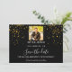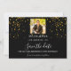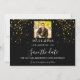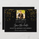 Une carte Save the Date pour une fête d'anniversaire de 50e (ou tout autre âge). Un arrière - plan noir. Décoré de confettis dorés. Le texte : Save the Date est écrit avec un grand script de style à la main tendance. Personnalisez et ajoutez une photo.