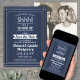 Pouvez-vous garder un secret? Invitez famille et amis à une fête d'anniversaire surprise élégante et excitante avec des invitations personnalisées "save the date" bleu marine et blanc. L'image et toutes les formulations de ce modèle sont faciles à personnaliser, y compris le message qui dit "Chut! C'est une SURPRISE." Le design présente une bordure rayée moderne sur un fond ombré bleu marine, une photo de votre choix, une typographie art déco vintage classique et une calligraphie script stylée. Félicitations et joyeux anniversaire au couple pour leur célébration d'anniversaire marquant!