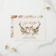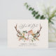 Carte de mariage 'save the date' avec feuillage rustique, floral et bois de cerf. Avec de beaux feuillages aquarelle, fleurs blanches, rondelle de bois et écriture manuscrite. Cette invitation moderne est sûre de définir le style de votre fête à venir.