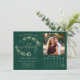 Cette belle carte Save the Date présente un design couleur vert émeraude et sage avec des lettres de script modernes et des sprigs de feuilles aquarelles peints à la main, des vignes, de la verdure ou du feuillage. Il y a de l'espace pour votre photo, le nom du couple et l'emplacement du mariage, et un calendrier personnalisé où vous pouvez mettre un coeur autour de votre journée spéciale. Merveilleuse façon de commencer votre voyage mariage et de faire savoir à chacun de penser à votre date dans leurs calendriers! Également disponible en téléchargement numérique pour que vous puissiez l'envoyer par SMS ou par e-mail, ou l'inclure sur votre site mariage.