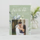Cette invitation "save the date" présente des arrangements élégants de feuilles de feuillage de verdure à l'aquarelle et une belle calligraphie et une police de caractères serif simple avec un cadre photo carré sur un fond vert poussiéreux et un code QR pour un look propre, minimaliste et moderne, ce qui est une belle façon d'informer vos proches de votre mariage imminent. Annoncez à votre famille et à vos amis que vous vous mariez avec cette invitation et ajoutez une touche personnelle avec de belles photos de vous et de votre futur meilleur moitié. La simplicité de ce design ajoute une touche d'élégance à votre mariage. Cela fonctionne bien avec de nombreux thèmes de mariage et constitue certainement un excellent ajout à votre mariage. Il suffit de personnaliser les noms et le texte en quelques étapes faciles et de personnaliser la carte d'invitation avec votre photo du couple heureux et de remplacer le code QR par le vôtre.