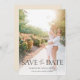 Mariage élégant et moderne Enregistrer la carte Date avec une photo fiançailles de la mariée et du futur marié sur le devant.