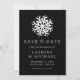 Annoncez votre mariage d'hiver avec notre Simple Flocon de neige Noir et Blanc Enregistrer la Date. Doté d'un flocon de neige blanc et d'une affiche "Save the Date" en serif et en calligraphie élégante sur un arrière - plan noir, ce design saisit la beauté de l'hiver. Personnalisez avec vos noms, votre date de mariage et votre emplacement ci-dessous. Parfait pour les mariages d'hiver, de vacances et de Noël, cette date de sauvegarde donne le ton d'une célébration magique.
