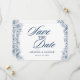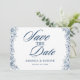 Save The Date Fleur Bleu Blanc Élégant Simple Enregistrer La Dat