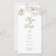 Carte de préavis élégante et jolie avec fleur blanche mettant en valeur les détails de votre date spéciale dans une écriture dorée élégante. Personnalisez avec les détails de votre événement spécial. Le verso présente des pétales de fleurs blanches dispersées. Conçu par Thisisnotme©