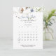 Cette fleur de forêt sauvage à l'exception du calendrier date est parfait pour un mariage rustique. Ce design présente une aquarelle peinte à la main, des fleurs de forêt sauvage blanches et bleues avec un feuillage vert.