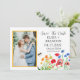 Annoncez votre journée spéciale en style avec notre Fleur sauvage Floral Photo Save the Date Faire-part de mariage. Avec un mélange époustouflant de fleurs sauvages d'aquarelle et une photo personnalisée, cette invitation capture magnifiquement l'essence de votre histoire d'amour. Le design sobre et fleuri dans les tons vibrants des fleurs sauvages apporte une touche rustique d'inspiration nature, ce qui en fait un choix idéal pour les couples qui souhaitent s'adonner à un boho, un jardin ou une mariage à thème rustique. Personnalisables avec votre photo fiançailles et les détails du mariage, ces photos sauvegardent les invitations de date afin que vos invités marquent votre mariage sur leurs calendriers avec enthousiasme. Les délicats accents floraux et les tons pastel doux font de cette carte un souvenir élégant et mémorable pour vos proches. Que vous planifiez un mariage campagnard ou une fête inspirée de la nature, cette invitation à la date à la floraison est une belle façon de partager vos grandes nouvelles et de donner le ton à votre prochain mariage.