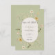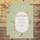 Ce mariage, à l'exception de la carte datant, est doté d'un délicat arrière - plan vert sauge, qui dégage un sens de sophistication et de richesse. La teinte verte à la sauge douce crée un décor captivant qui donne le ton pour une célébration mémorable. Au centre de l'invitation se dresse un cadre de texte ovale, qui constitue un point focal gracieux. Le cadre est magnifiquement travaillé, dégageant un sens du raffinement et de l'élégance. Sa forme apporte une touche d'unicité, attirant l'attention des destinataires. Autour du cadre de texte, des fleurs sauvages d'aquarelle délicats et rustiques sont artistiquement disposés. Ces fleurs charmantes, aux teintes douces, évoquent un sentiment de beauté naturelle et de tranquillité. La technique de l'aquarelle leur donne une apparence douce et éthérée, renforçant l'ambiance romantique globale de l'invitation. La combinaison de l'arrière - plan vert sauge, du cadre de texte ovale et des fleurs sauvages d'aquarelle rustique crée un faire-part de mariage visuellement époustouflant qui respire l'élégance et une touche de fantaisie. Il ouvre la voie à une célébration romantique remplie de beauté naturelle et de moments de coeur. Créé par Simply Farmhouse Press, il fait partie de la suite Rustic Fleur sauvage Frame Sage Green mariage.