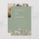 Save The Date Fleur sauvage Sage Green Photo QR Code Enregistrer