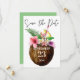 Mettez vos invités dans l'ambiance de la fête avec ce carton de save the date à motif floral tropical hawaïen et noix de coco. Disponible en plusieurs couleurs.
