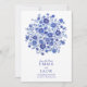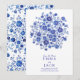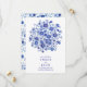 Annoncez votre journée avec des fleurs de chinoiserie bleues, présentant un motif floral global d'illustrations de fleurs à l'aquarelle dans un style classique inspiré de la porcelaine bleue et blanche. Le devant présente un bouquet de fleurs d'indigo au-dessus de votre texte, associé à une typographie serif élégante et un carton "save the date" écrit à la main pour un look raffiné. Cette conception de papeterie de mariage romantique est idéale pour les couples qui aiment les détails de bouquet floral bleu et le style botanique intemporel.
