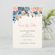 Save The Date Fleurs aquarelles roses et bleues de mariage