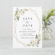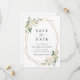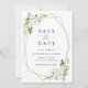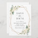 Invitations amis et famille dans le style et donner le ton pour votre journée spéciale avec ce charmant enregistrer la carte de date. Le design présente des fleurs d'aquarelle blanche, de la verdure et un cadre doré sur un arrière - plan blanc.