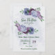 Beau mariage romantique sauvez l'invitation de la date avec des fleurs bleues et violettes poussiéreuses et quelques feuilles verts. POUR PLUS DE PRODUITS CORRESPONDANTS cliquez sur la collection ci-dessus ou contactez-moi