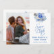 Capturez votre amour avec cette élégante photo Enregistrez la Date avec des fleurs bleu poussiéreux douces. Un choix romantique et intemporel pour les mariages de printemps, de jardin ou classiques. Ajoutez votre photo préférée pour une touche personnelle à votre annonce.