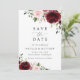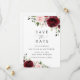Invitations amis et famille dans le style et donner le ton pour votre journée spéciale avec ce charmant enregistrer la carte de date. Le design présente des fleurs d'aquarelle bordeaux et rose vif et de la verdure sur l'arrière - plan blanc.